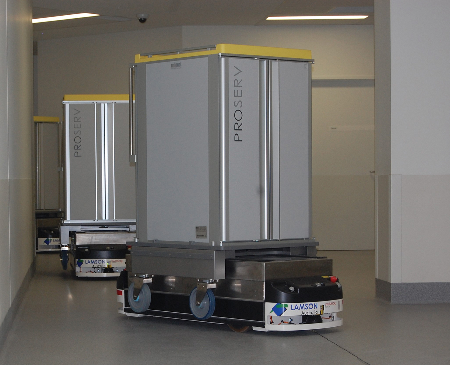 The Sunshine Coast University Hospital (SCUH) currently has 450 beds, with plans to grow to 738 beds by 2021. The Lamson Automated Guided Vehicle (AGV) system, Transcar, automatically transports meals, laundry, waste and supplies throughout the hospital. Sixteen Transcar vehicles make more than 900 journeys every day to transport ~500 trolleys to 124 drop-off stations around the hospital. The AGVs can transport up to 500kg and travel along 2.3 kilometres of pre-determined track.